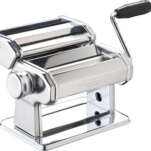 La máquina de metal para hacer pasta es un equipo diseñado para elaborar pasta fresca de manera artesanal o profesional. Está fabricada con acero inoxidable o aleaciones de alta resistencia, lo que garantiza durabilidad y facilidad de limpieza. Generalmente, cuenta con rodillos ajustables para estirar la masa al grosor deseado y accesorios intercambiables para cortar distintos tipos de pasta, como fettuccine, lasaña, espaguetis y más. Puede ser operada manualmente mediante una manivela o contar con un motor eléctrico para mayor comodidad.